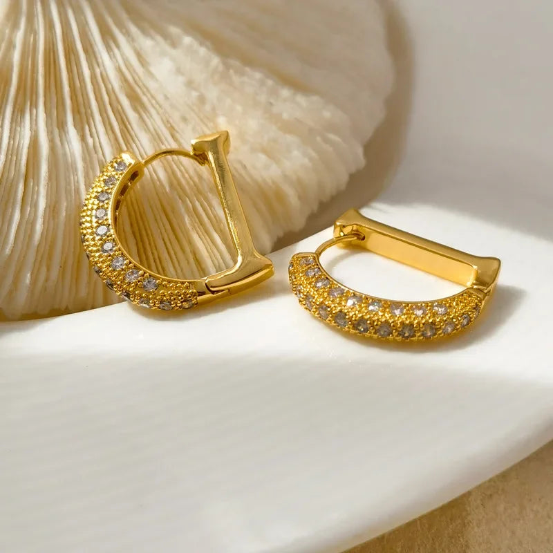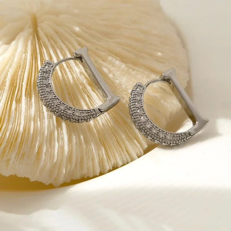 De D-vormige design is verrijkt met sprankelende stenen die elke outfit laten stralen. Deze oorbellen zijn perfect voor vrouwen die houden van een subtiele maar luxe uitstraling. Hun veelzijdige ontwerp maakt ze geschikt voor zowel casual als formele gelegenheden.